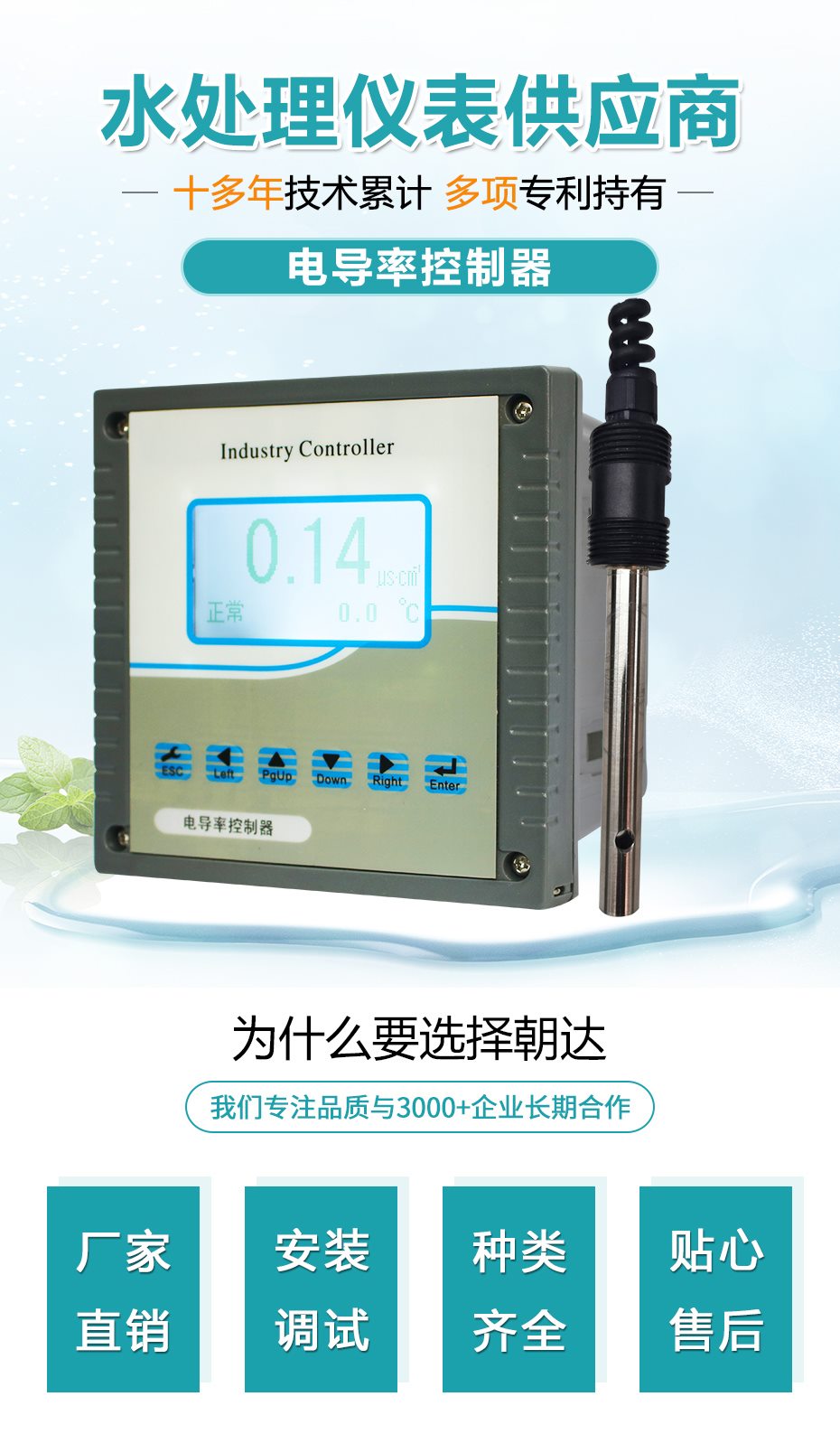 在线电导率仪是带微处理器的水质在线监测仪,该仪表配置不同常数的电*广泛用于电厂、石油化工、冶金电子、矿业、纸业、半导体、医药、食品饮料、环保水处理、新型农业种植等各个行业;适用于软化水、原水、蒸汽冷凝水、海水蒸馏以及去离子水等。